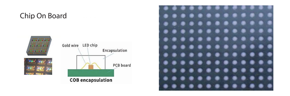 Chip on Board or COB is a kind of LED display that has an integrated circuit wiring bonded to a printed circuit board having LED lamps. These lamps are present in the front while ICs at the back that complete a COB LED module. When these modules are joined together, they create an LED display.